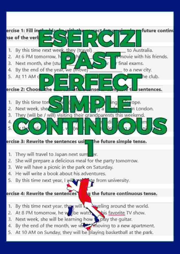 Questi esercizi sono pensati per aiutarti a praticare il livello di inglese, concentrandosi sul futuro semplice e il futuro continuo. Sono suddivisi in dieci esercizi, con risposte incluse, per aiutarti a rafforzare la comprensione e l'uso corretto di queste strutture verbali.